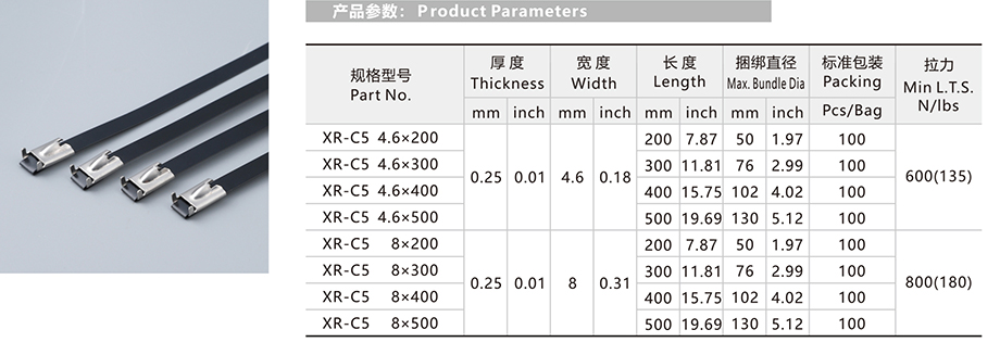 噴塑不銹鋼扎帶-滾珠自鎖式帶腳加強型